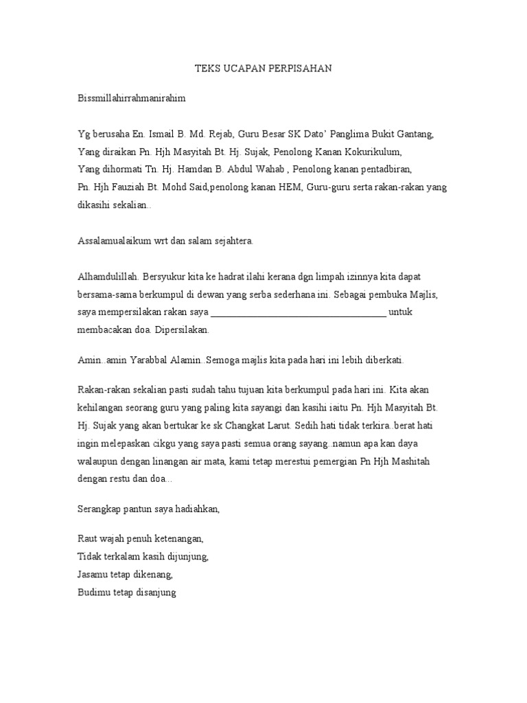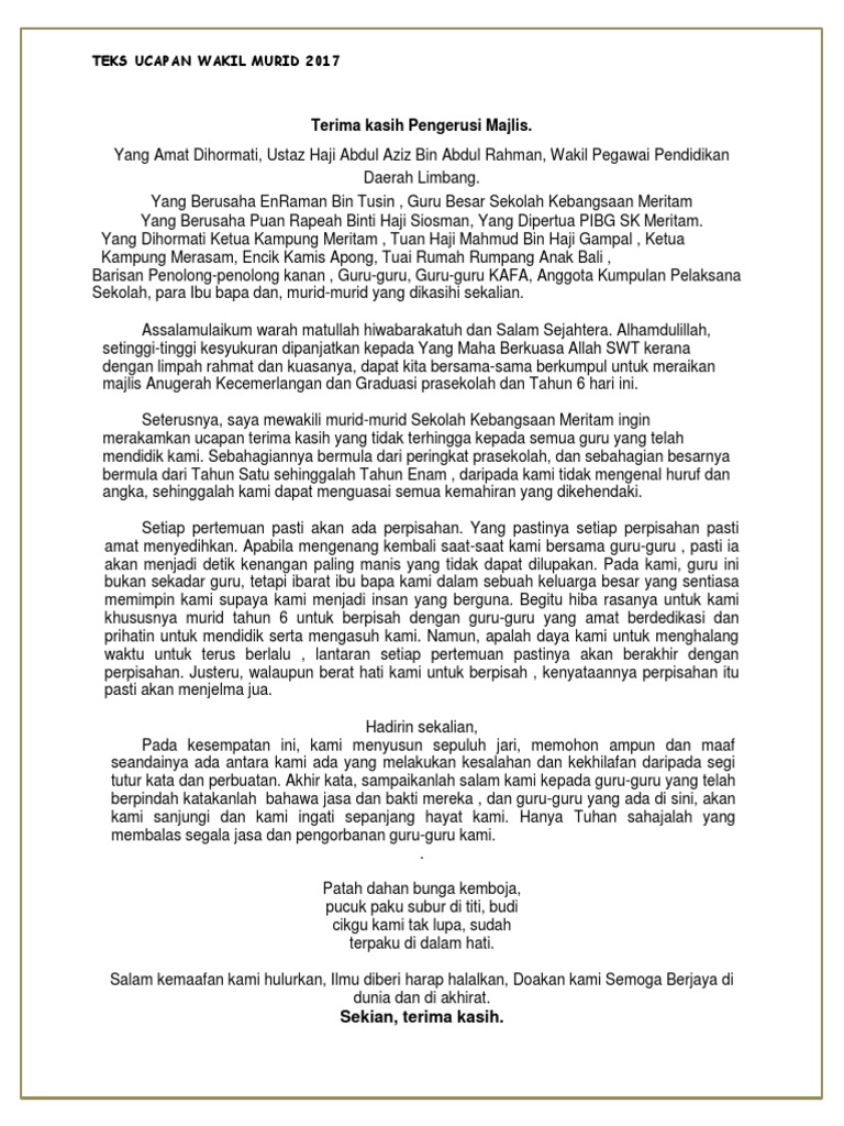 Teks Ucapan Wakil Murid Sempena Persaraan Guru Pdf