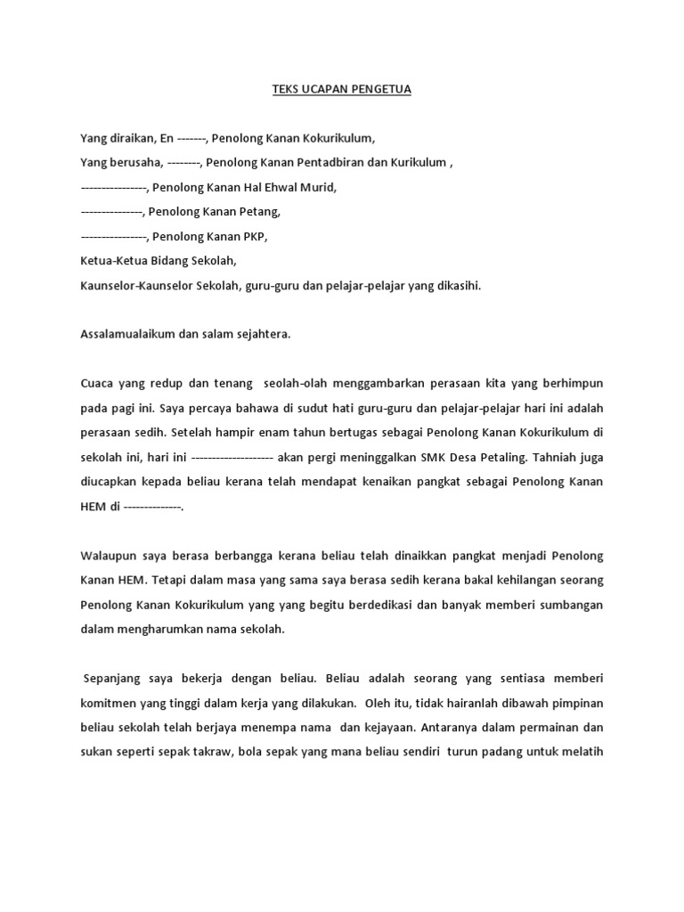 Teks Ucapan Majlis Perpisahan Persaraan Pdf